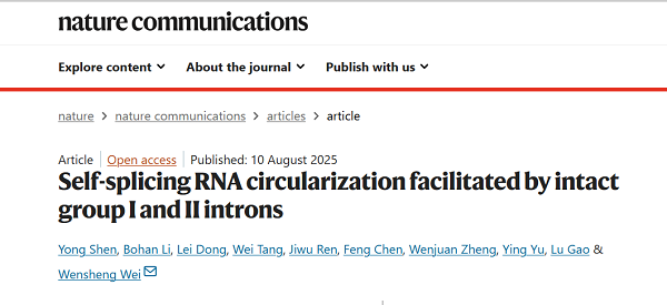 2025 年 8 月 10 日,一項(xiàng)在 RNA 治療領(lǐng)域具有里程碑意義的研究成果重磅發(fā)布 ——北京大學(xué) / 昌平實(shí)驗(yàn)室魏文勝教授團(tuán)隊(duì)與圓因生物攜手,在國(guó)際知名期刊《Nature Communications》發(fā)表了題為 “Self-splicing RNA circularization facilitated by intact group I and II introns” 的研究論文。該研究提出了兩種全新的體外 RNA 環(huán)化技術(shù),不僅為 RNA 環(huán)化領(lǐng)域帶來(lái)了革新,也凸顯了圓因生物在環(huán)狀 RNA 平臺(tái)搭建方面的卓越實(shí)力。