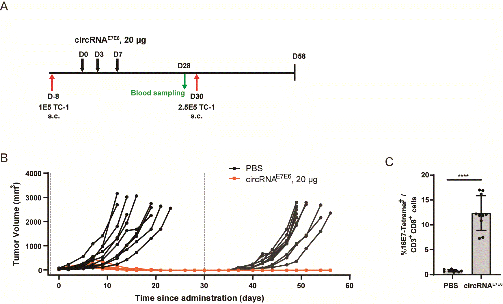 圖3:circRNAE7E6介導腫瘤完全緩解并預防復發(fā)